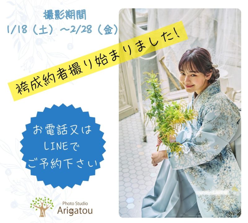 卒業袴成約者さまの前撮り特典が使える期間、(1/18~2末まで)がスタートしました!