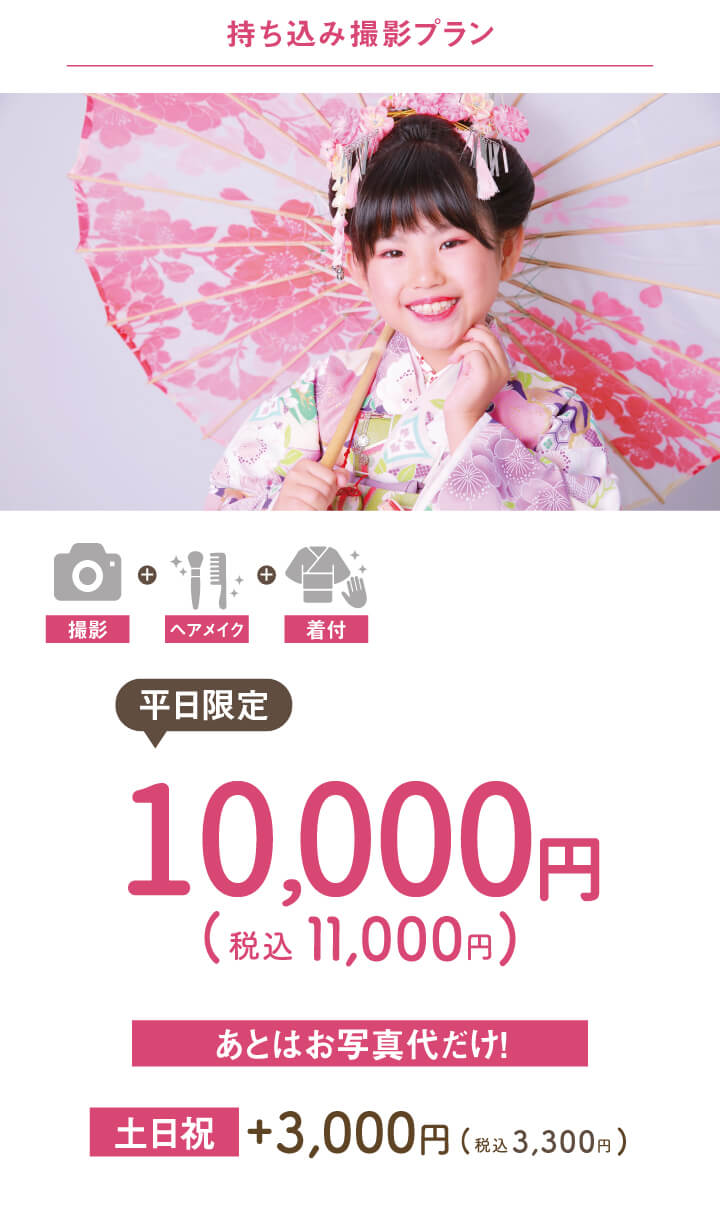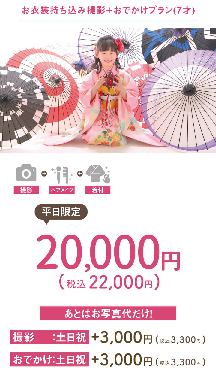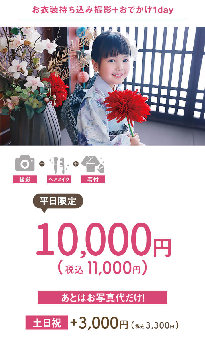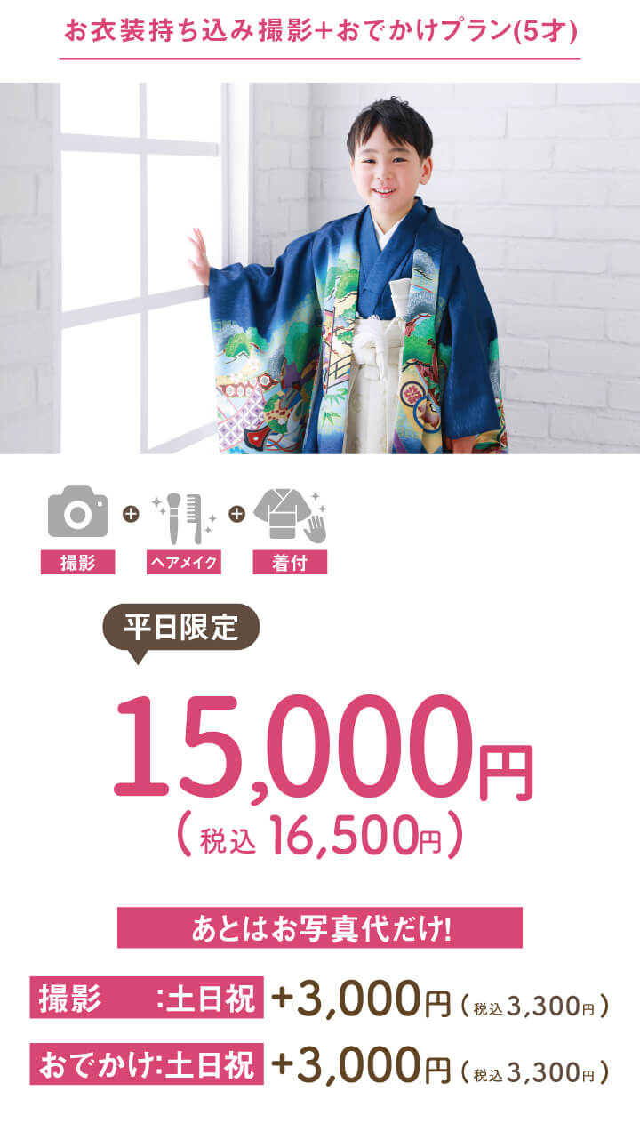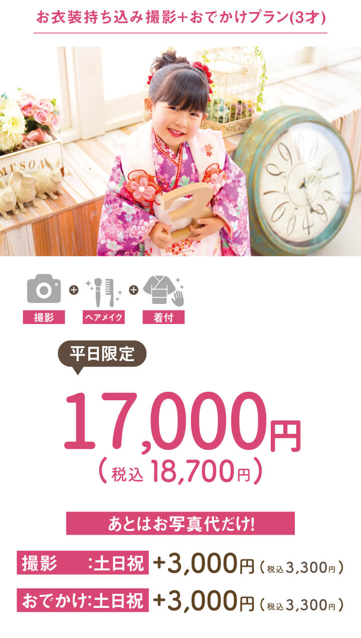 ※土日祝の3,000円(税込3,300円)は、撮影時・お出かけ時が土日祝の場合、それぞれに必要です。