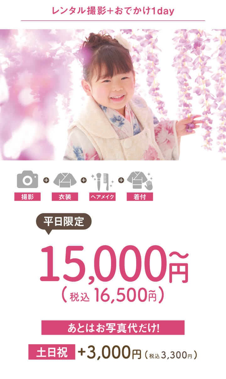 ※お出掛け時に撮影をご利用になる方は、撮影衣装レンタルプランが追加になります。