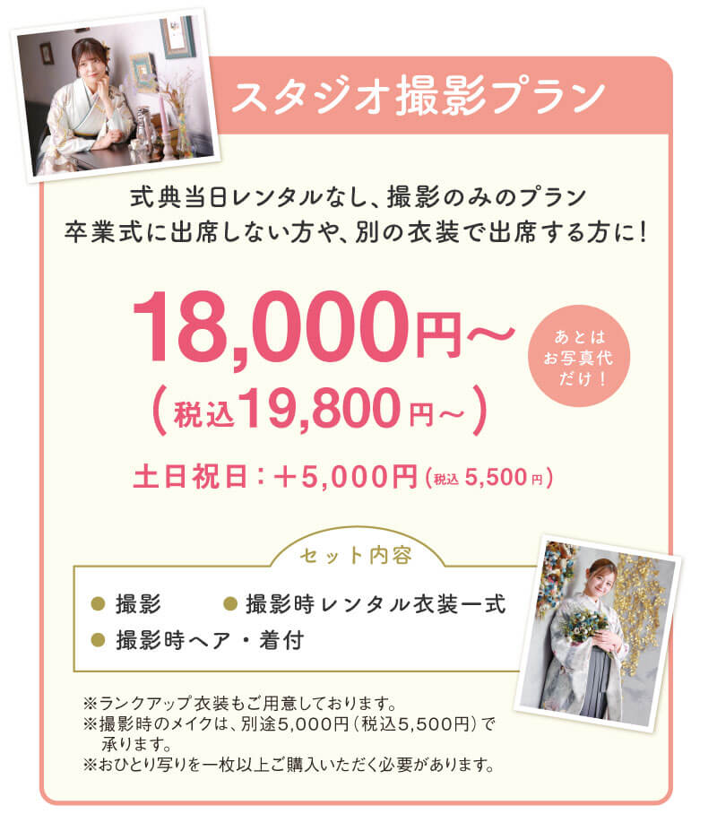 スタジオ撮影プラン付きでオトクです♪