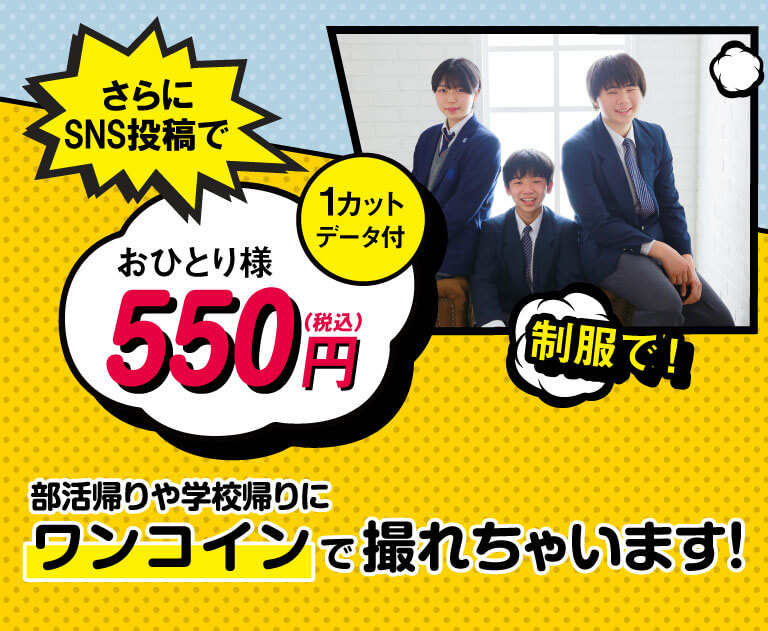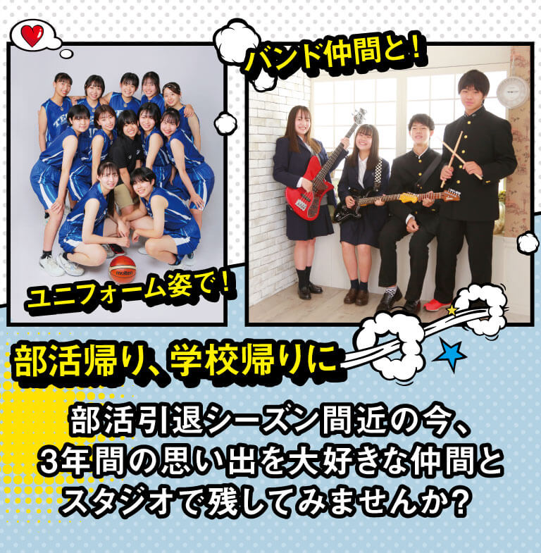 部活帰り、学校帰りに本格スタジオでワイワイ撮影できちゃう!